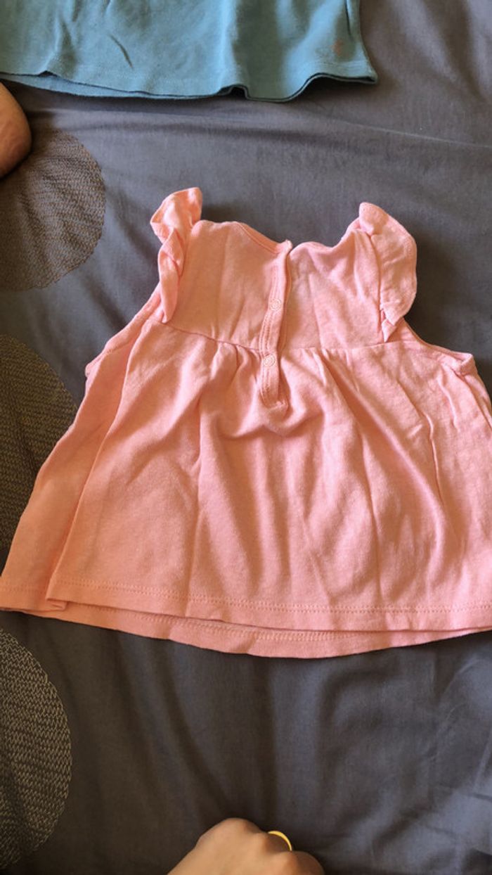 tee-shirt petit bateau collection 2019 neuf 6 mois également en couleur bleu très beau à porter petits volants sur les bras très légers excellent état