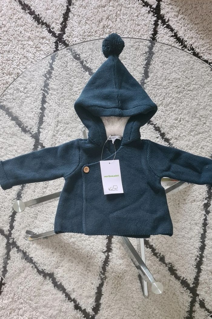 Je vend un cardigan neuf pour bébé de la marque verbaudet en taille 6 mois.