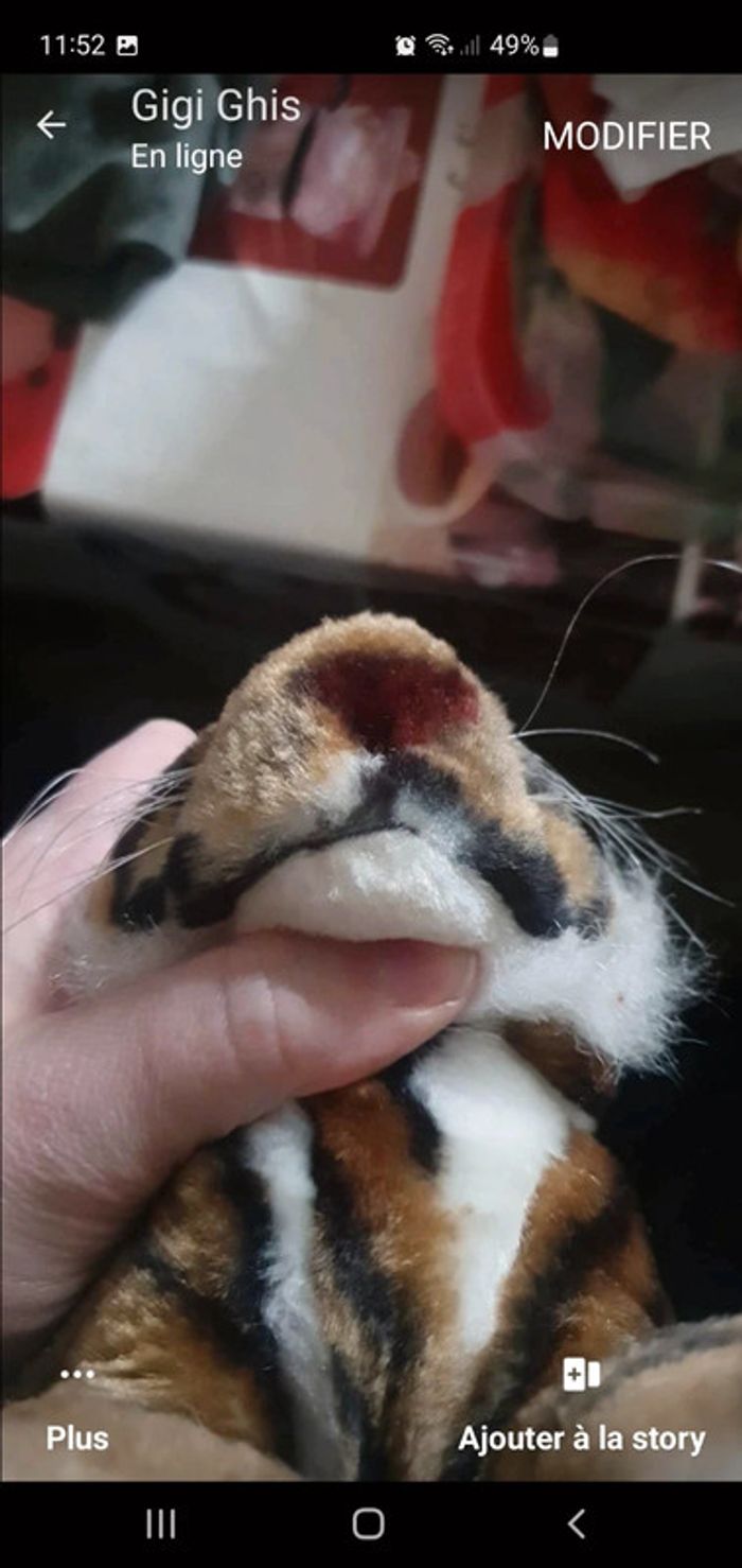 Tigre Il n y a pas de nez dur c est un nez teinté directement sur la peluche