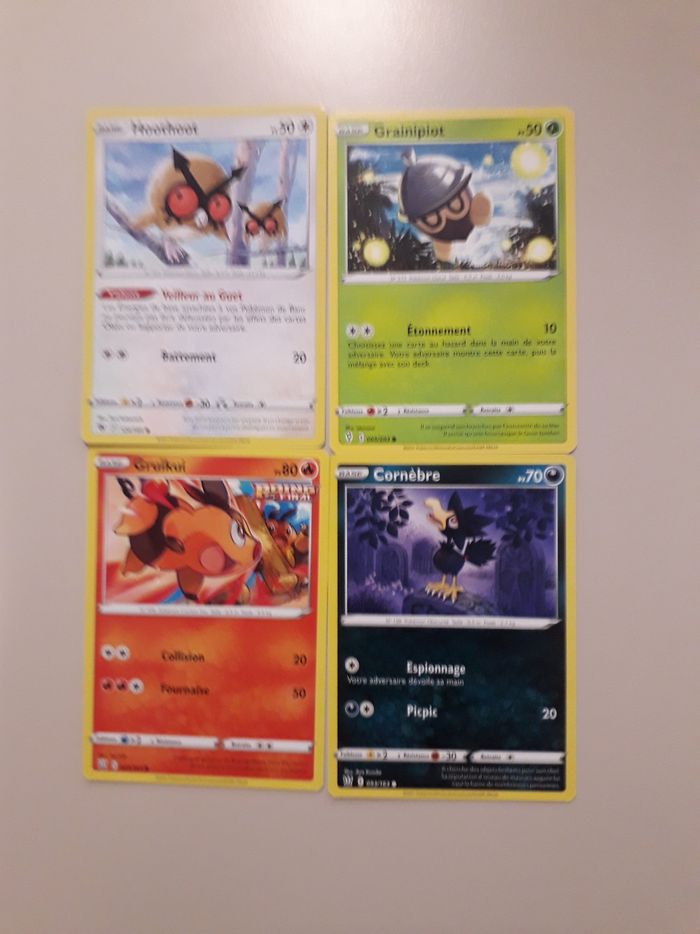 Hoothoot + Grainipiot + Gruikui + Cornèbre lot de 4 cartes Pokémon neuves