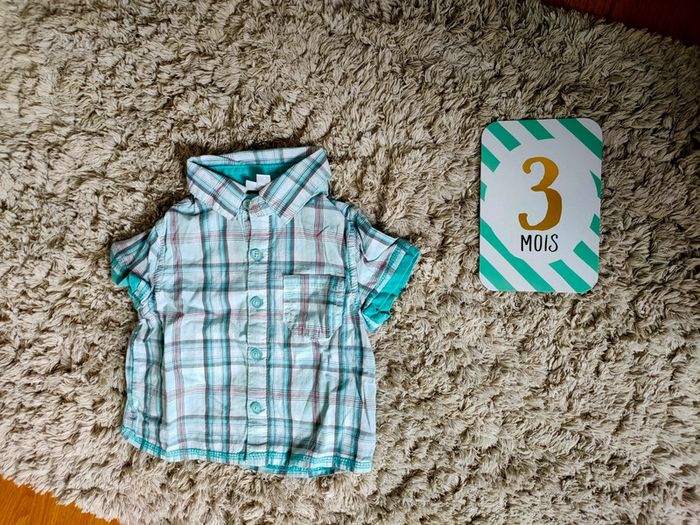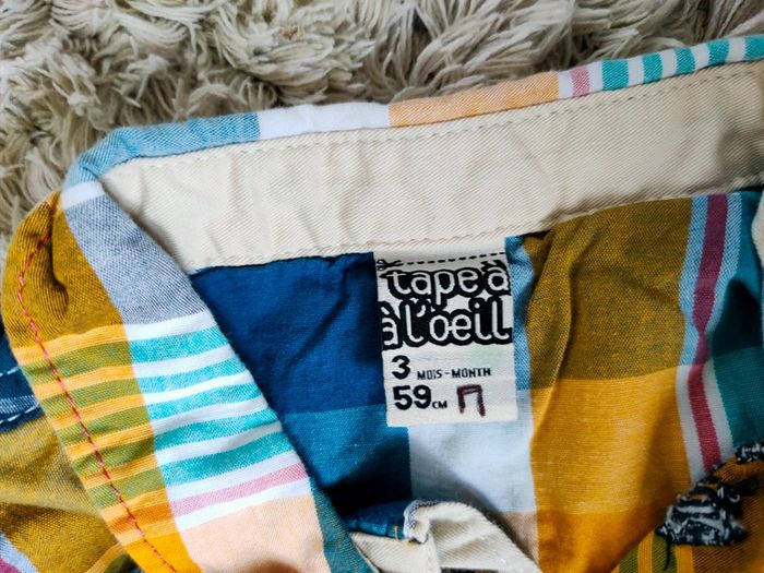 Ensemble salopette short et 2 chemises à carreaux 3 mois - photo numéro 7