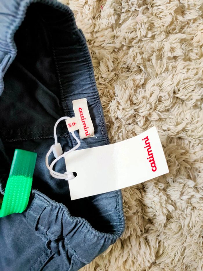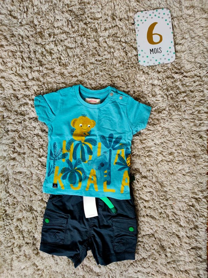 Ensemble short/T-shirt catimini bleu 6 mois Neuf Short bleu marine à poches et T-shirt bleu turquoise avec un singe et des palmiers