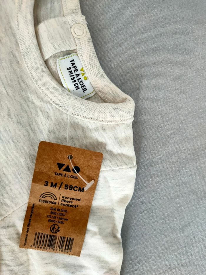 2 T-shirt manches longues 3 mois rouge et beige TAO - photo numéro 3