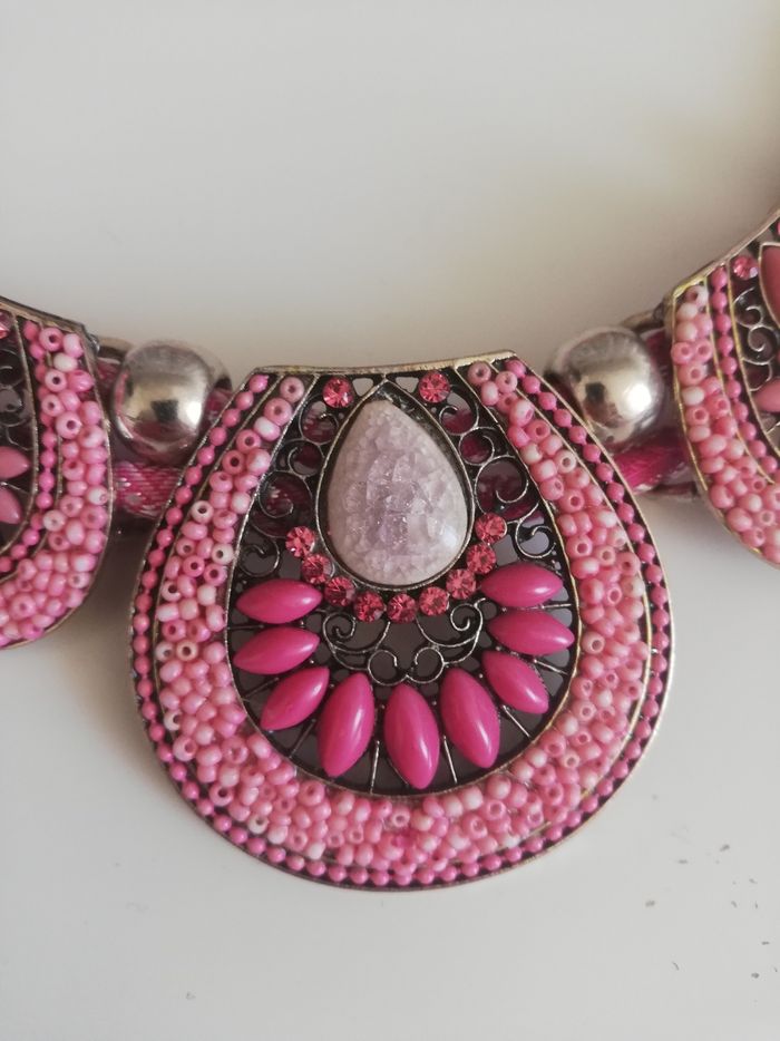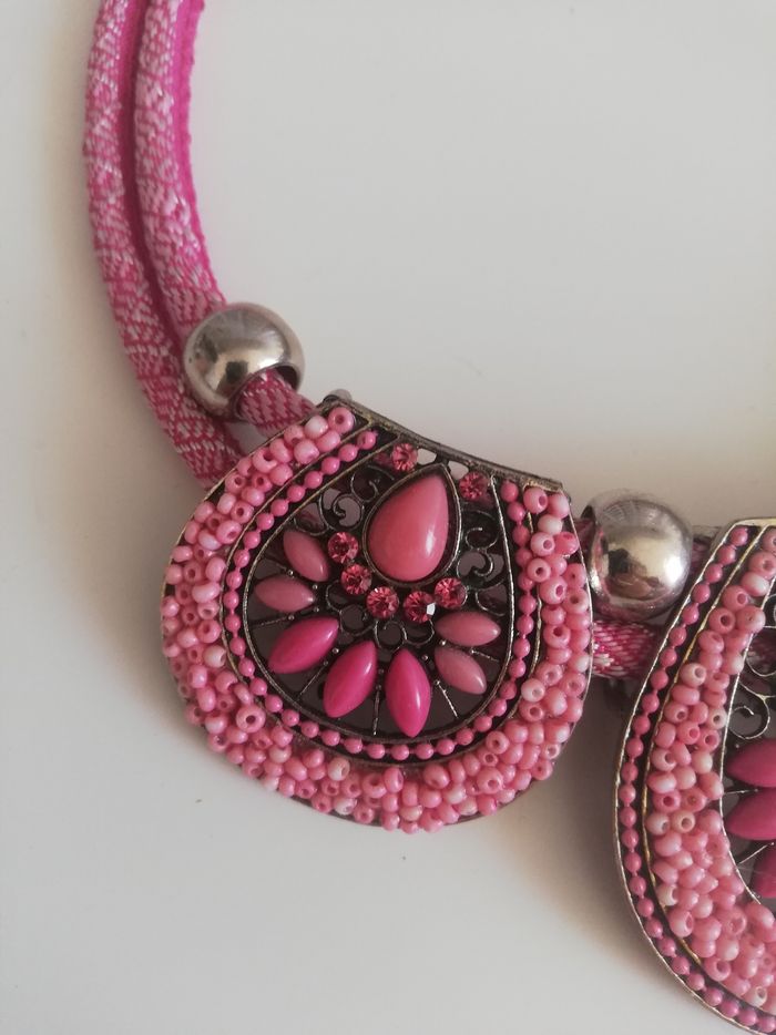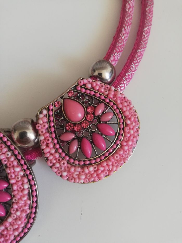 Collier rose strass et perles de rocailles - photo numéro 5
