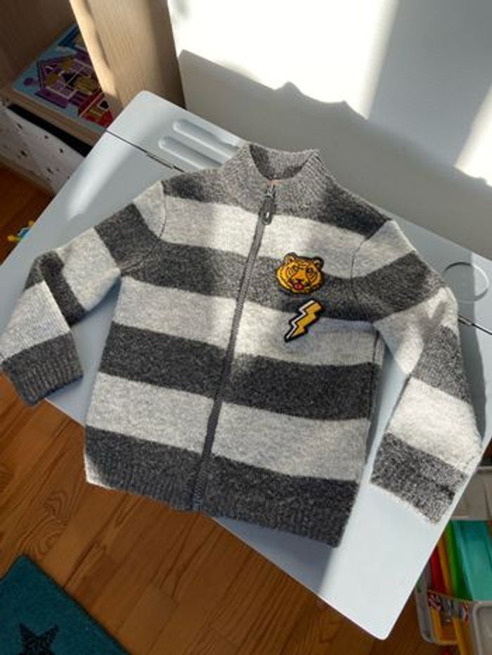 Gilet à fermeture éclair, rayures grises, taille 3 ans, en parfait état.