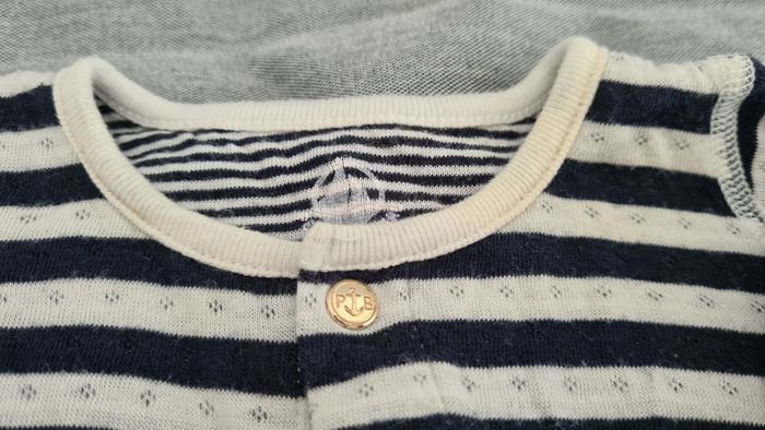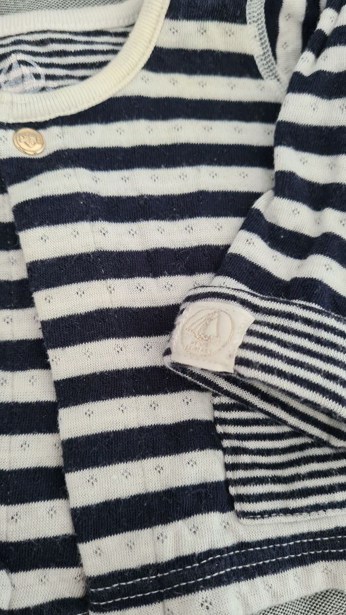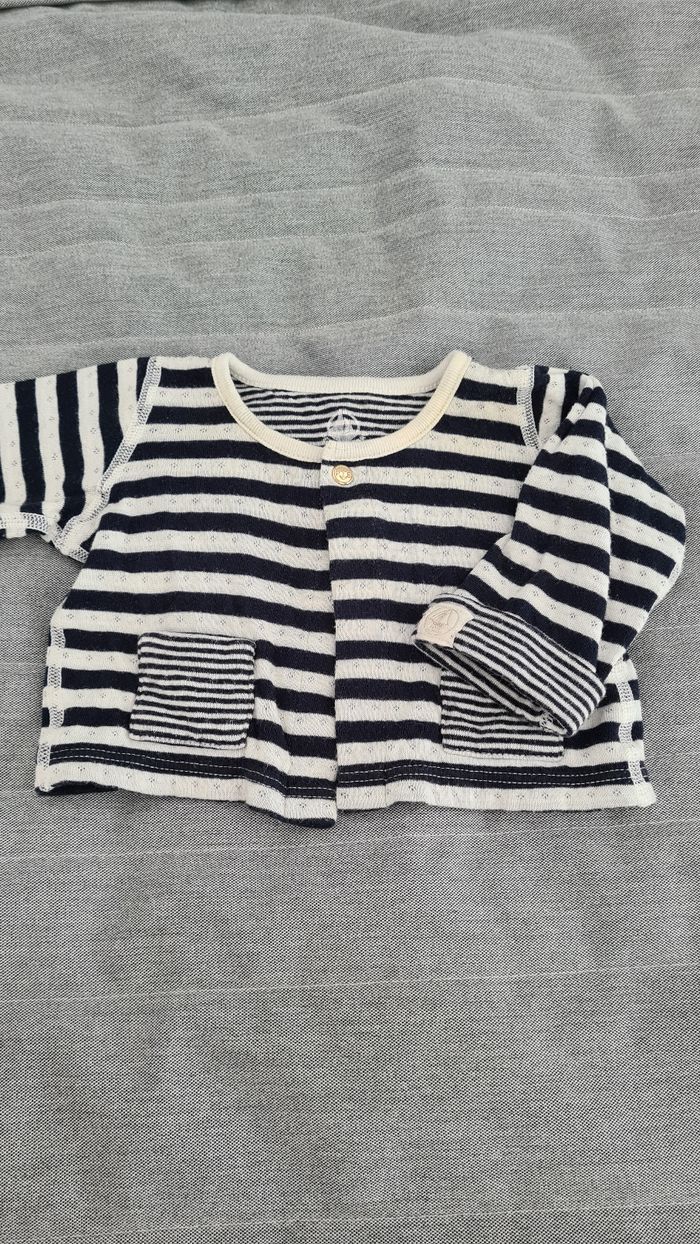 Petit bateau Gilet rayé bleu et blanc en bon état (col très légèrement jaunit) 1 mois