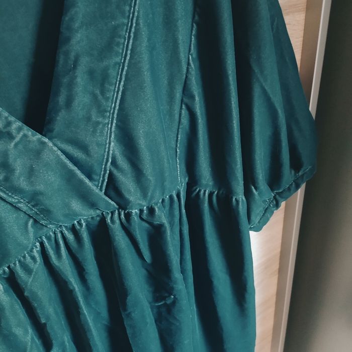 Robe Promod, ouverture cache coeur, se porte ample, idéal grossesse. En velours court vert foncé et irisé. Portée deux fois. Taille 44.