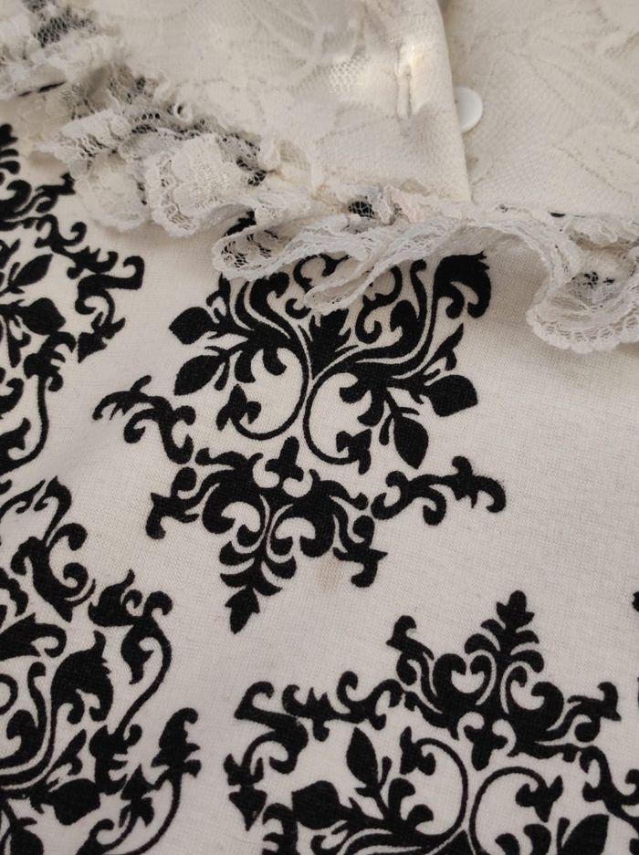 Pull épais style baroque a col victorienne et dentelle attache boutons a l'avant. Une toute petite tâche a peine visible a l'oeil nu Taille 4/5 ans
