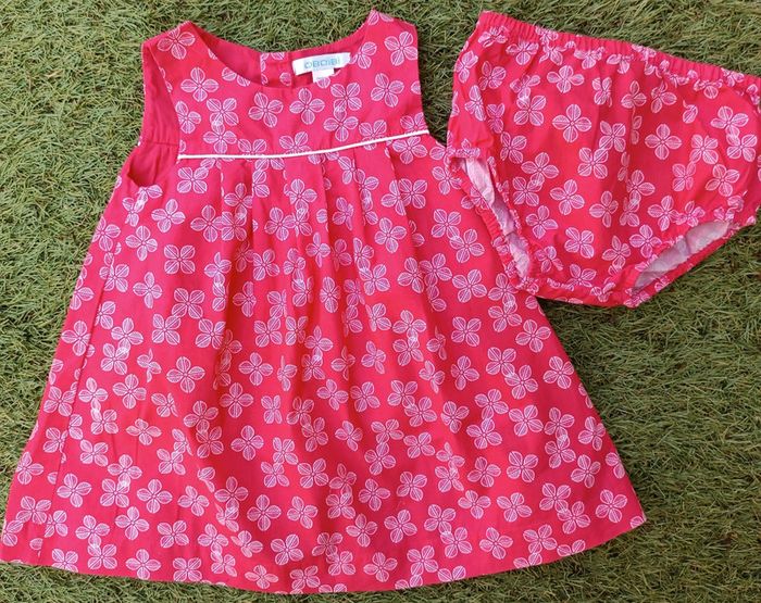 Très belle robe avec la culotte assortie Marque Obaibi Taille 6mois Très bon état Pensez à regarder mes autres ventes, beaucoup de marques à petits prix et toutes tailles.