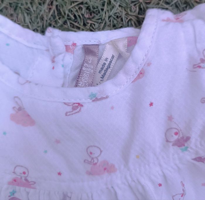 Très belles petite tunique aux impressions douces. Marque Orchestra Taille 3mois Très bon état Pensez à regarder mes autres ventes, beaucoup de marques à petits prix et toutes tailles.