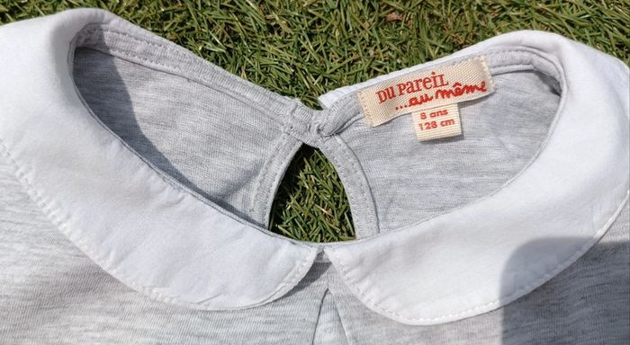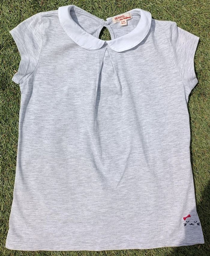 Beau petit tee shirt "chat au nœud", fermé dans le dos par un petit bouton qui forme une goutte. Col claudine Marque Du Pareil Au Même Taille 8ans Très bon état Pensez à regarder mes autres ventes, beaucoup de marques à petits prix et toutes tailles.