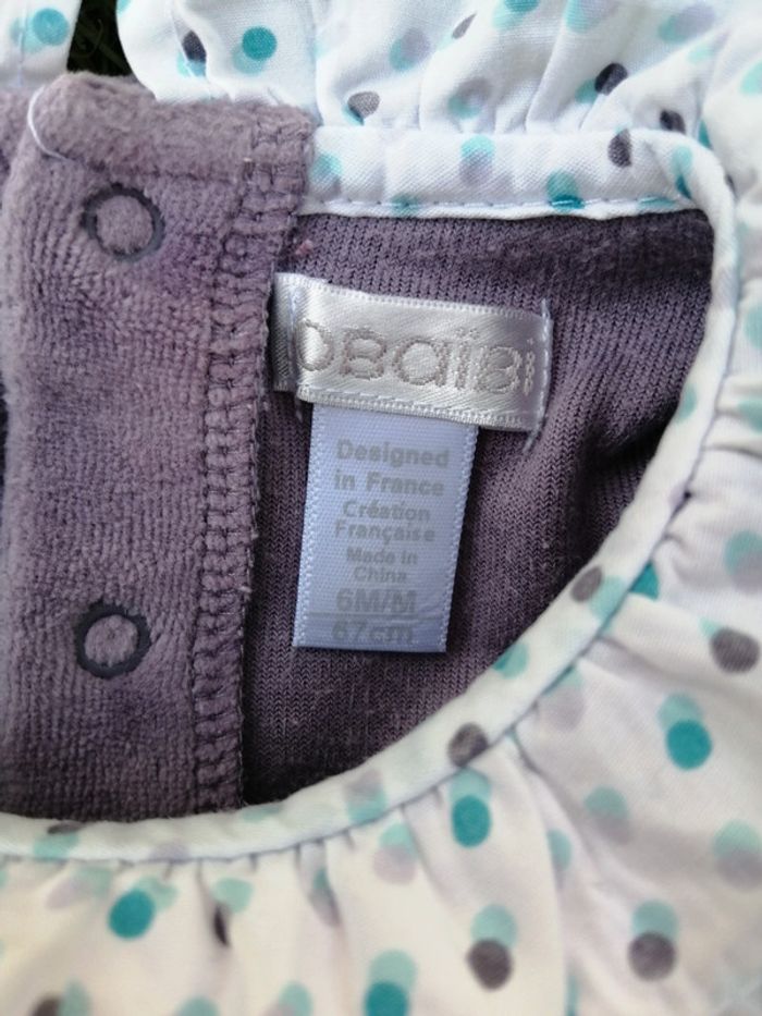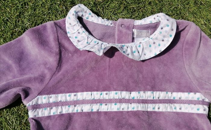 Beau petit pyjama col Claudine tout doux Marque obaibi Taille 6mois. Très bon état Pensez à regarder mes autres ventes, beaucoup de marque à petit prix et toute taille.