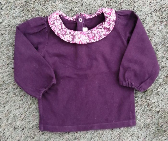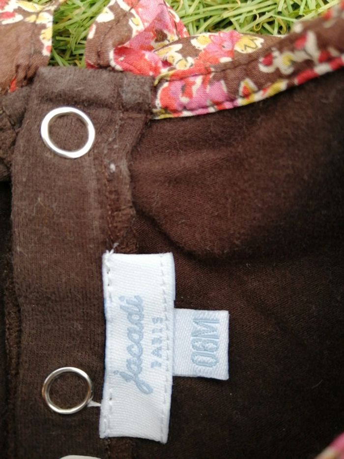 Joli petit tee short à manches longues Marque JACADI Marron avec beau petit col en liberty. Taille 6mois. Très bon état Pensez à regarder mes autres ventes, beaucoup de marques à petit prix et toute taille.