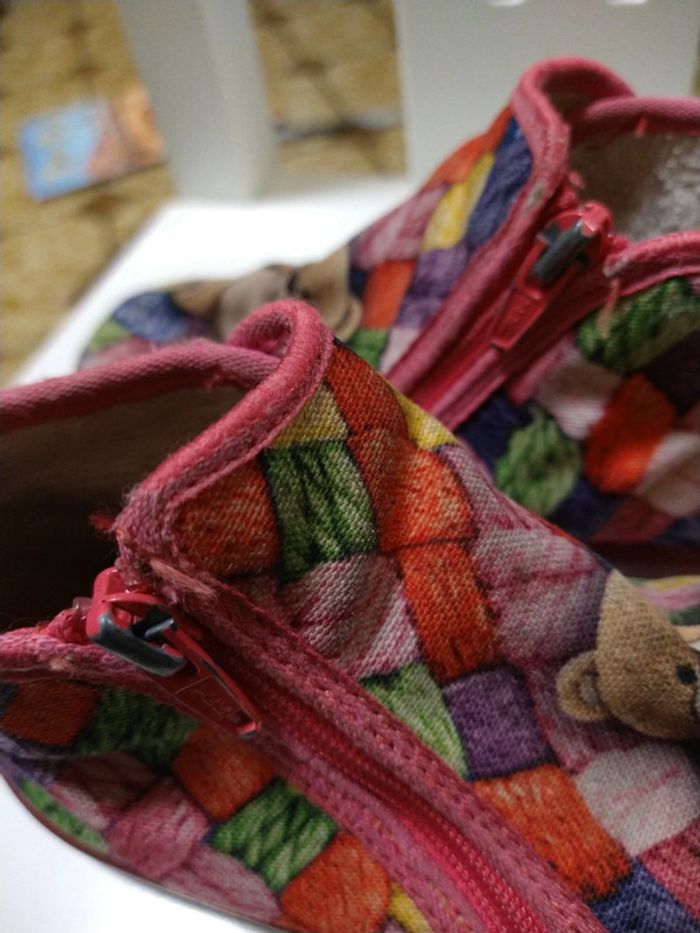 Chaussons pointure 27 marque Bellamy en bon état, traces d'usure de la semelle intérieure, peinture écaillée sur la fermeture éclair mais semelle extérieure en très bon état, les chaussons ferment, très bonne marque de chaussons. #chaussonsfille_lapsuscassis