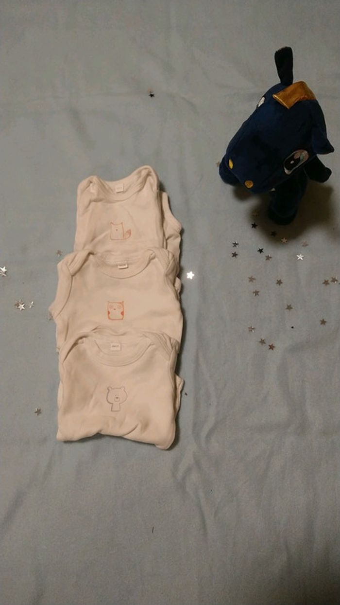 Lot de 3 bodies manches courtes taille 3 mois en très bon état sans marque