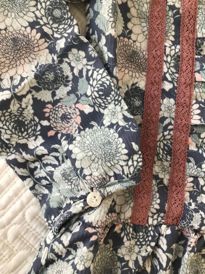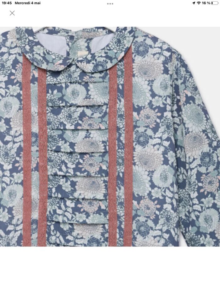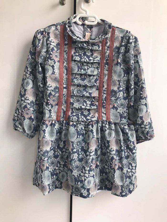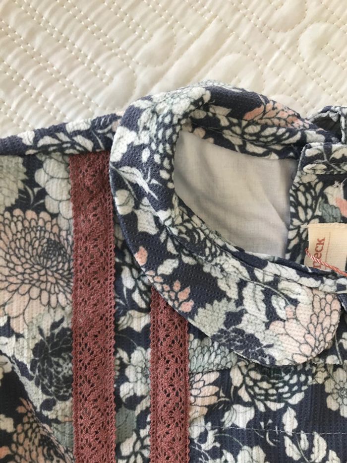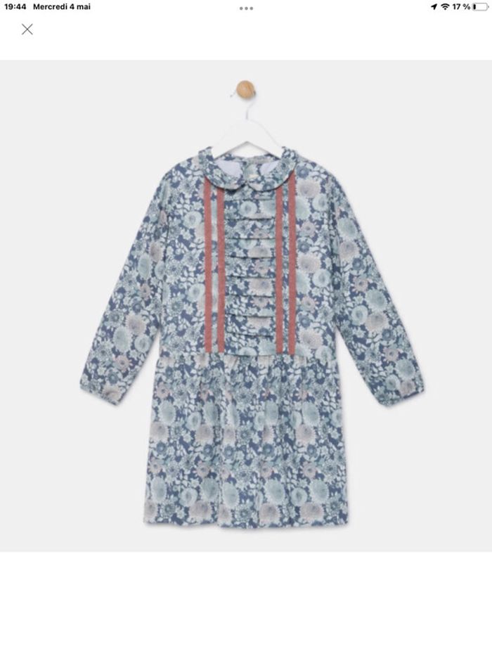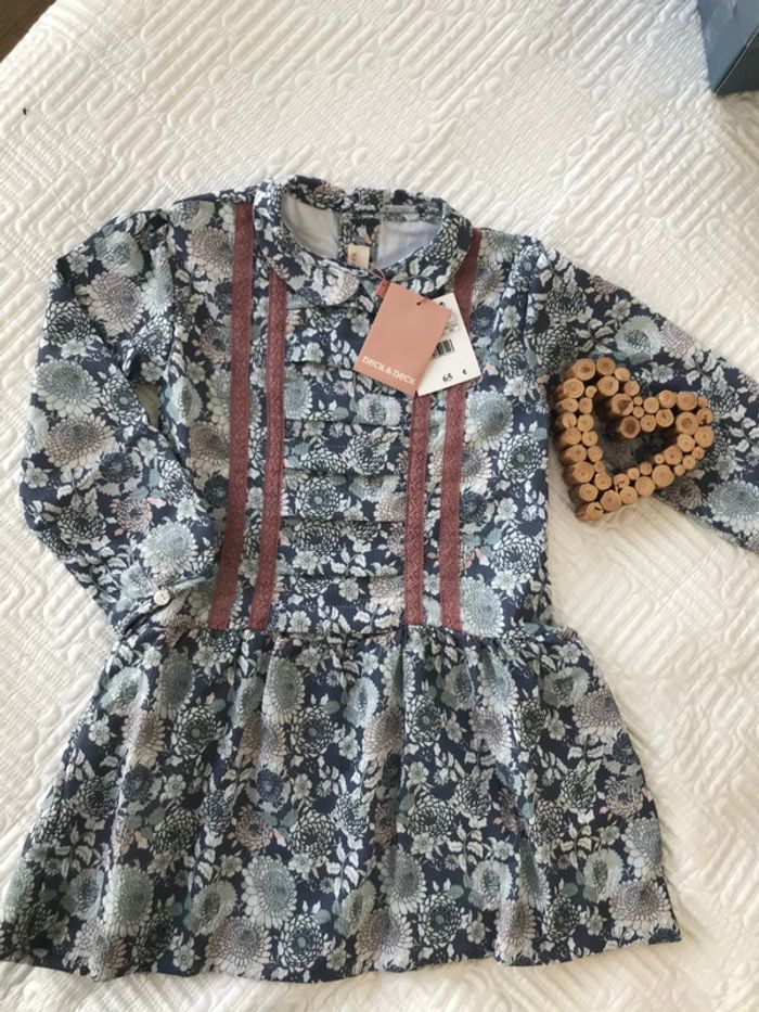Adorable robe de la jolie marque « neck&neck » taille4/5 ans neuve Manches longues Poignets boutonnés Col claudine Fermeture boutonnée au dos Imprimé fleuri Motif brodé à l'avant Doublée