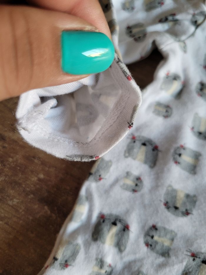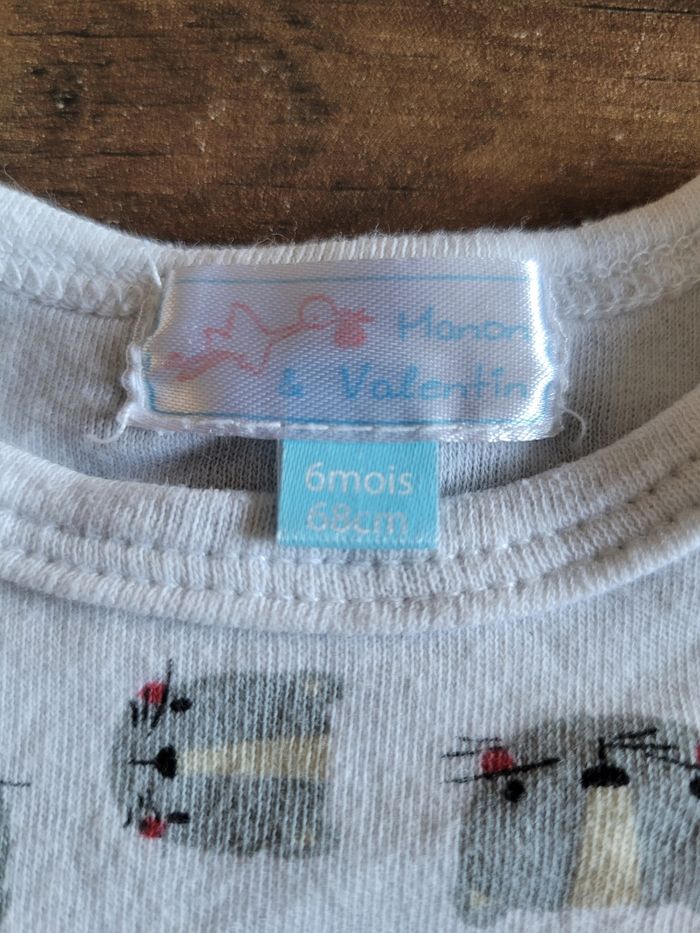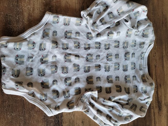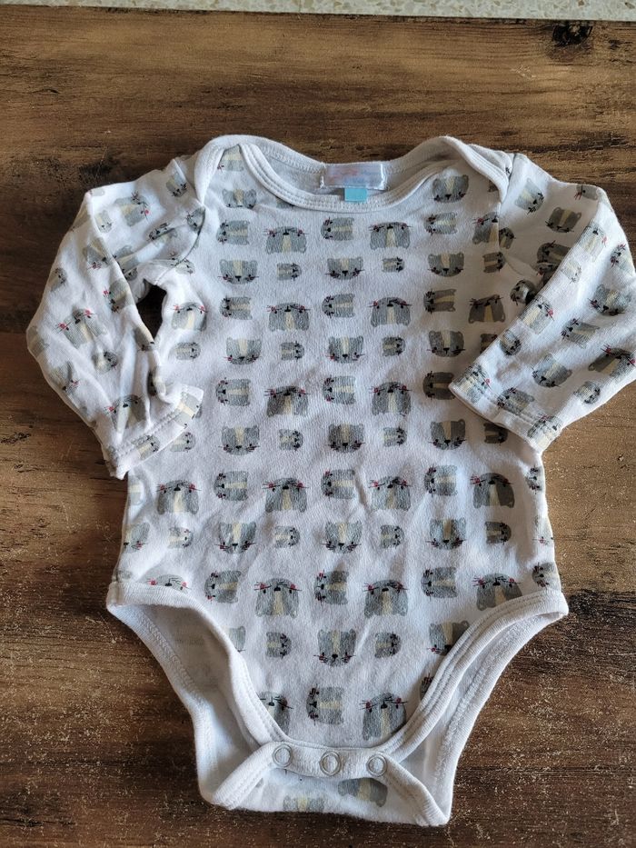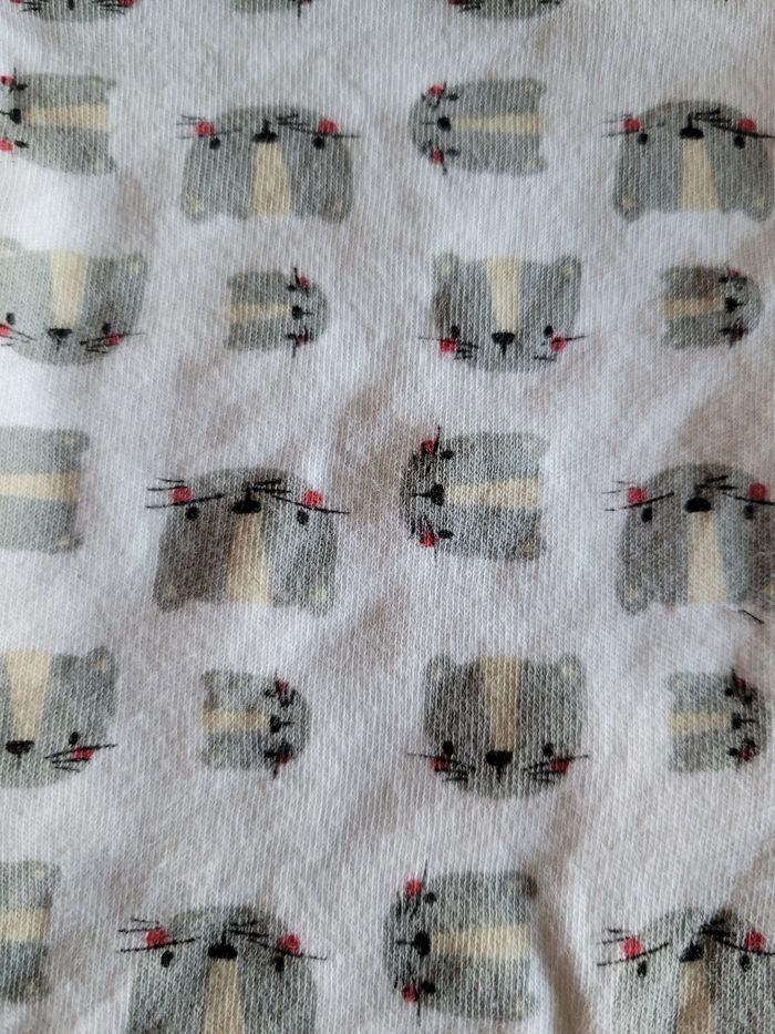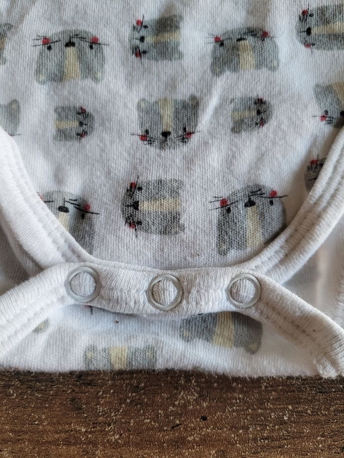 Petit bodie Manche longue Taille 6 mois Couleur blanc Dessin tête de chat Mi saison Bouton en bas Matière coton Mixte