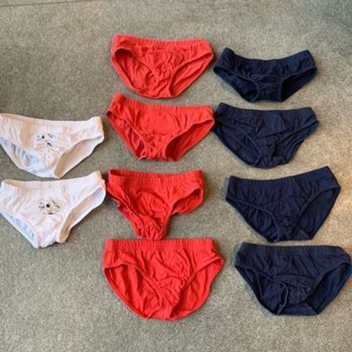 Lot de 10 Slips Tex En coton 4 ans Très bon état mais étiquette intérieure coupée Rouge et bleu marine et blanc