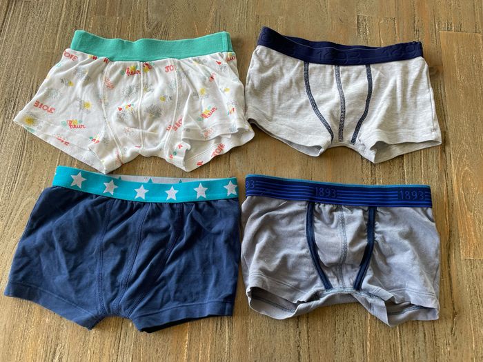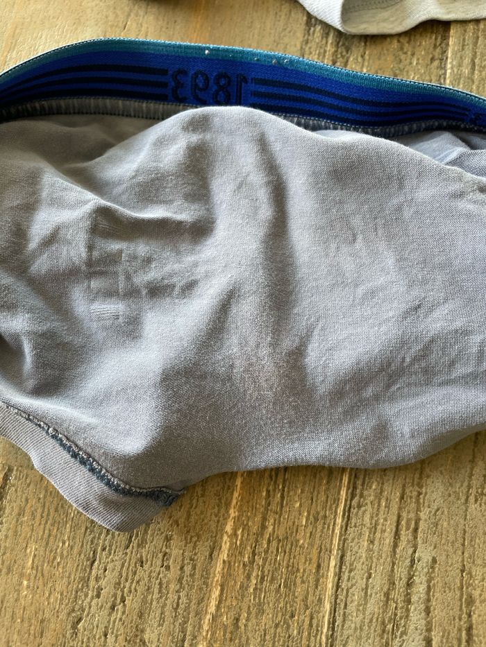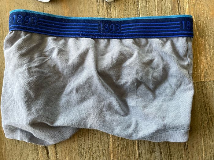 #simk35_8ans Boxers en très bon état hormis le gris qui a décoloré au niveau de la ceinture et au niveau des fesses. Voir photos