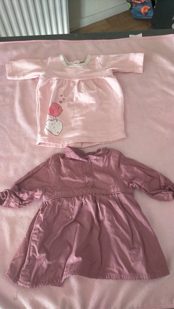Vend lot deux petite robe Taille 1 mois La robe rose très peux servis. La robe violette pas du tout servis.