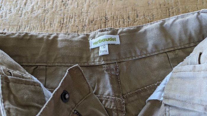 Pantacourt marron clair avec poches sur les côtés. Taille réglable à l'intérieur