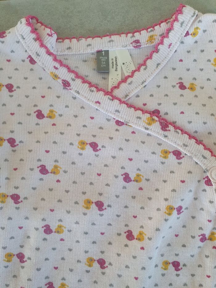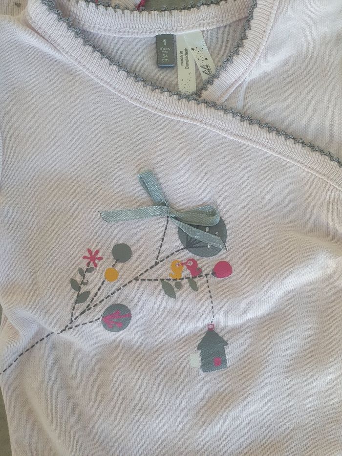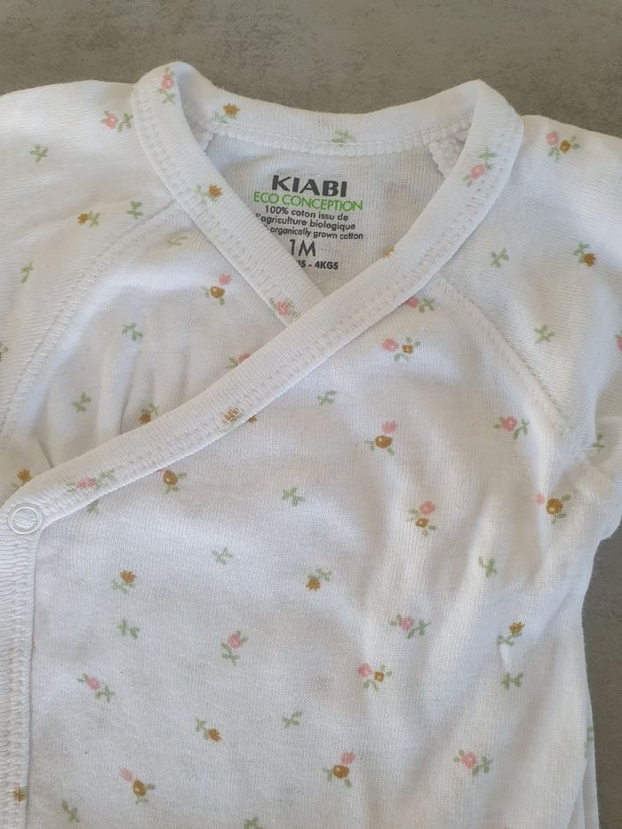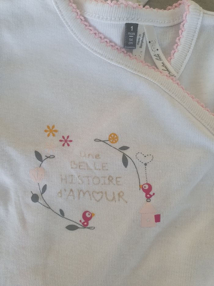 Lot de 4 bodys fille manches courtes 3 de la marque orchestra et 1 kiabi Le tout en très bon état, s'ouvre par pression devant, taille 1 mois