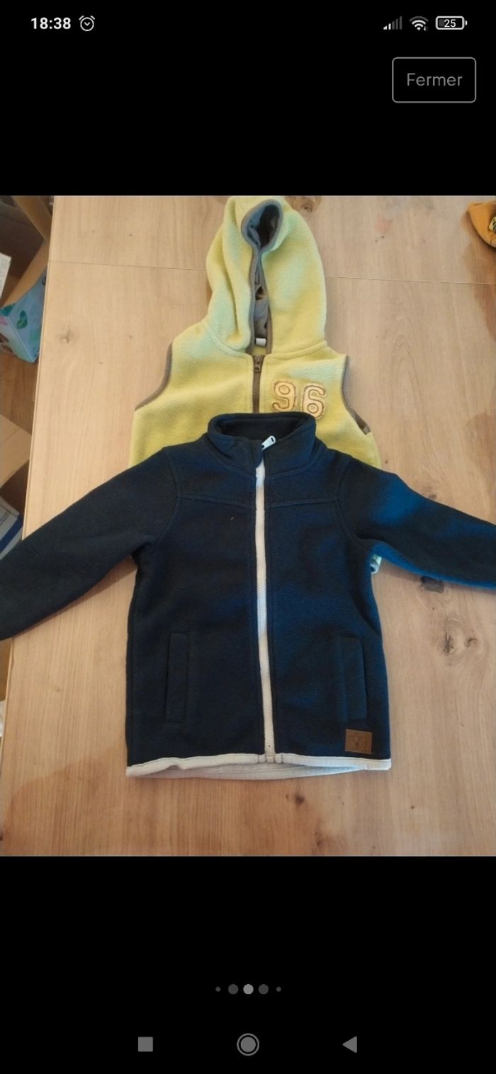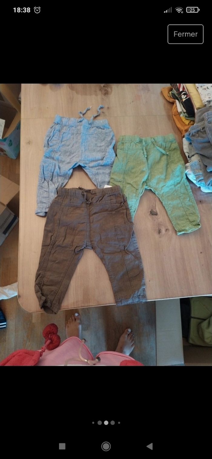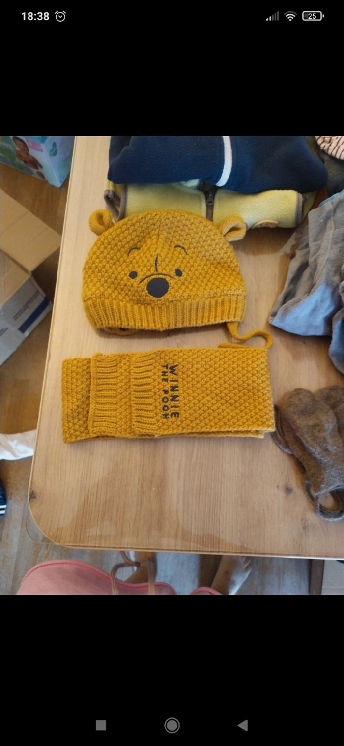 3 pantalons fin h&m 74 cm TBE 9 Hauts manches longues 7 lupilu 74/80cm 1 sans marque 12 mois 1 obaibi 74 cm TBE Pyjamas : 2 bon étatsans marque 2 pièces pouvant être clipsés 1 vertbaudet 74 cm TBE 1 sans marque 74 cm TBE 1 polaire manches longues zippé orchestra 12 mois 74 cm TBE 1 polaire sans manche zippé avec capuche sans marque 12 mois BE 1 ensemble bonnet écharpe Disney 1 bonnet seul 1 paire de mouffles en laine