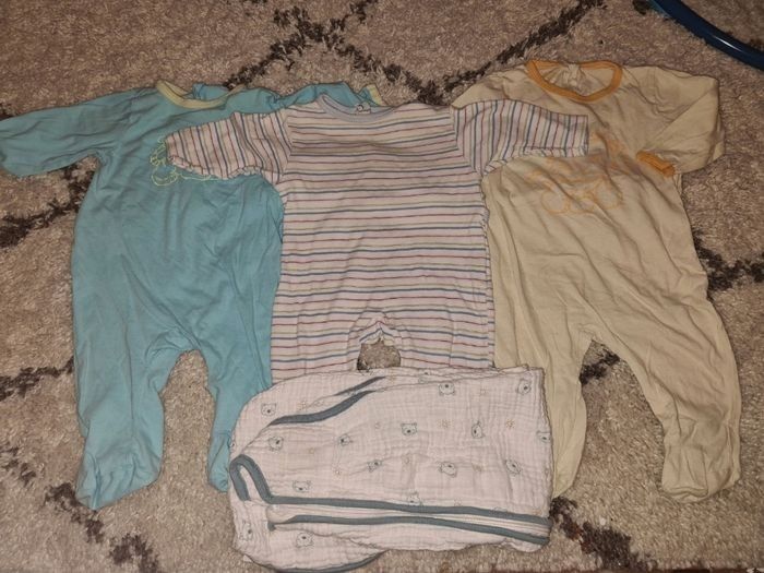 Lot de 3 pyjamas léger et une gigoteuse orchestra TOG 1 (utilisée 1 fois) Maison non fumeur Vêtements lavés Photos supplémentaires sur demande. N'hésitez pas à m'écrire d'autres vêtements sont également disponibles.