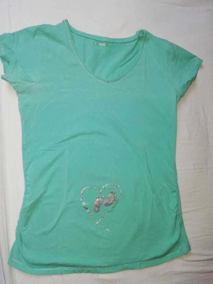 Tee-shirt manches courtes grossesse taille S. Marque: Prémaman (orchestra). Quelques brillants manquants autour du cœur. Bon état