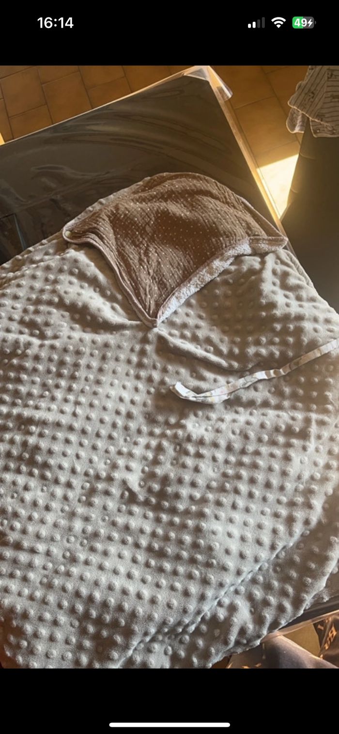 Comme neuf mon fils la utiliser très peu de temps acheter 45€ je le revend 35 Il est molletonné avec une petit couverture à l’intérieur pour plus de confort