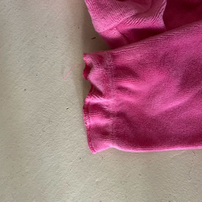 Porté quelques fois avec un fil rose qui s’enlève mais il faut juste le recoudre au niveau de la manche