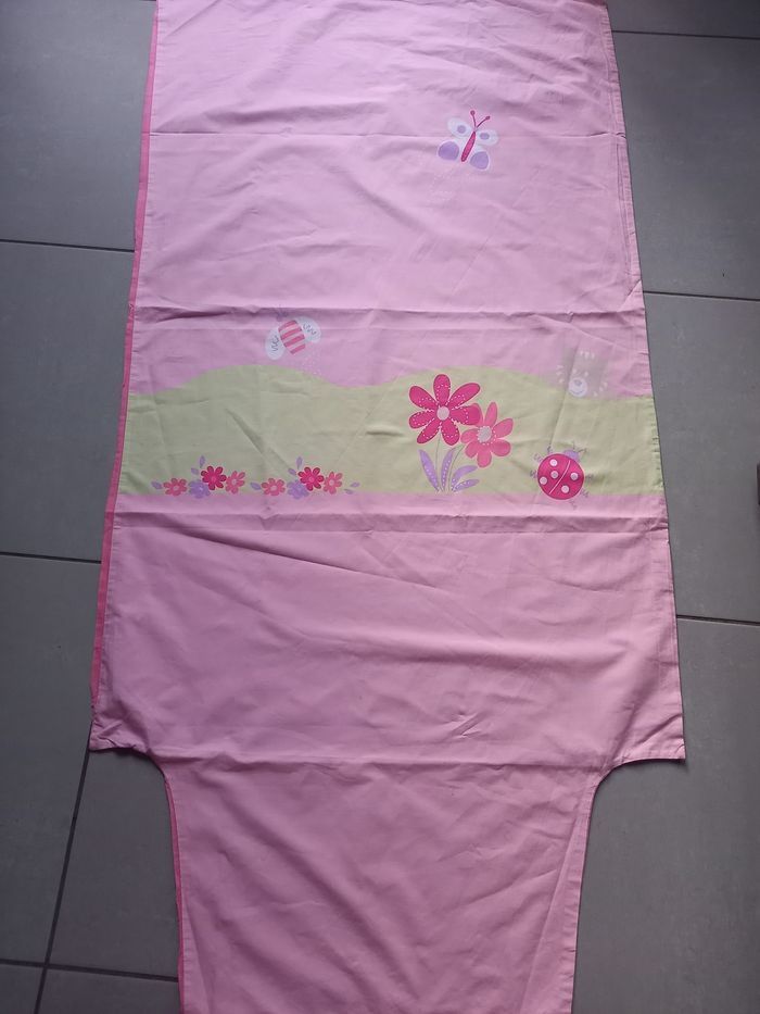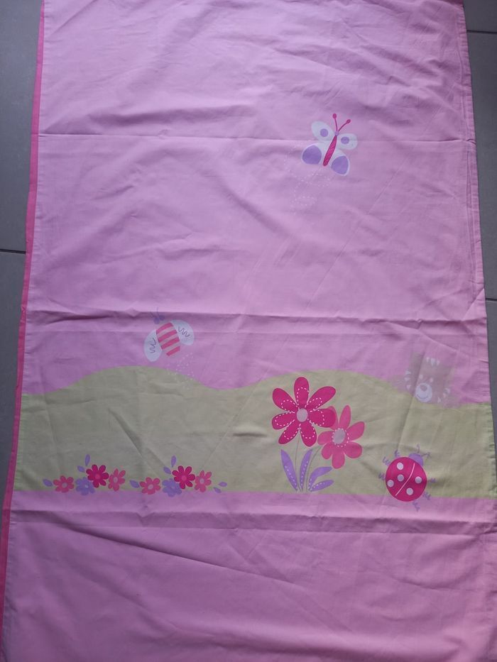 En très bon état Le rose avec des motifs papillons et l arrière et rose foncé Le bleu est avec des motifs lapin et l arrière et bleu foncé Dimensions 117x71