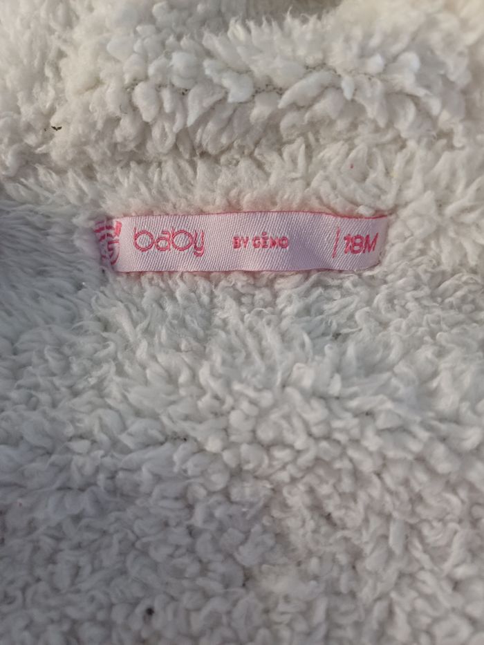 Gilet fourré 18 mois bien chaud à capuche. 2 poches sur le devant avec petits nœuds dessus