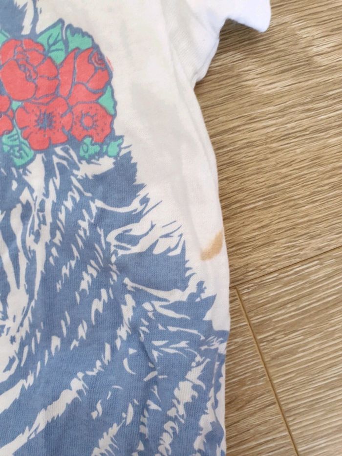 T-shirt en bon état général, quelques tâches sur le côté et le devant du t-shirt ( cf photo 2-3)