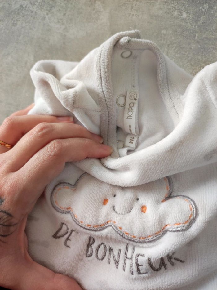 Pyjama garçon blanc un peu passé, bon état sans taches ni trous marque Gémo 1 mois