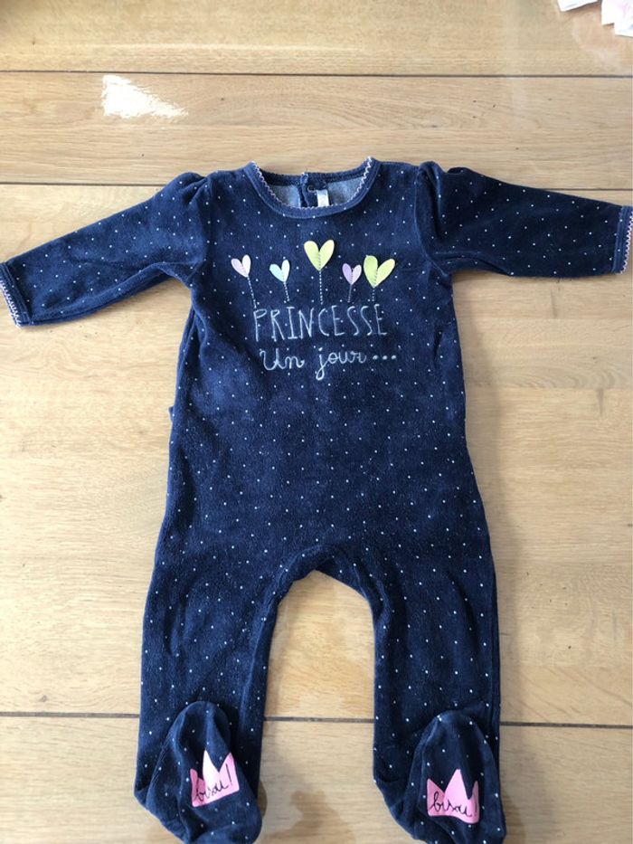 Pyjama velours , bleu nuit avec motif Taille 9M GEMO . Bon état .