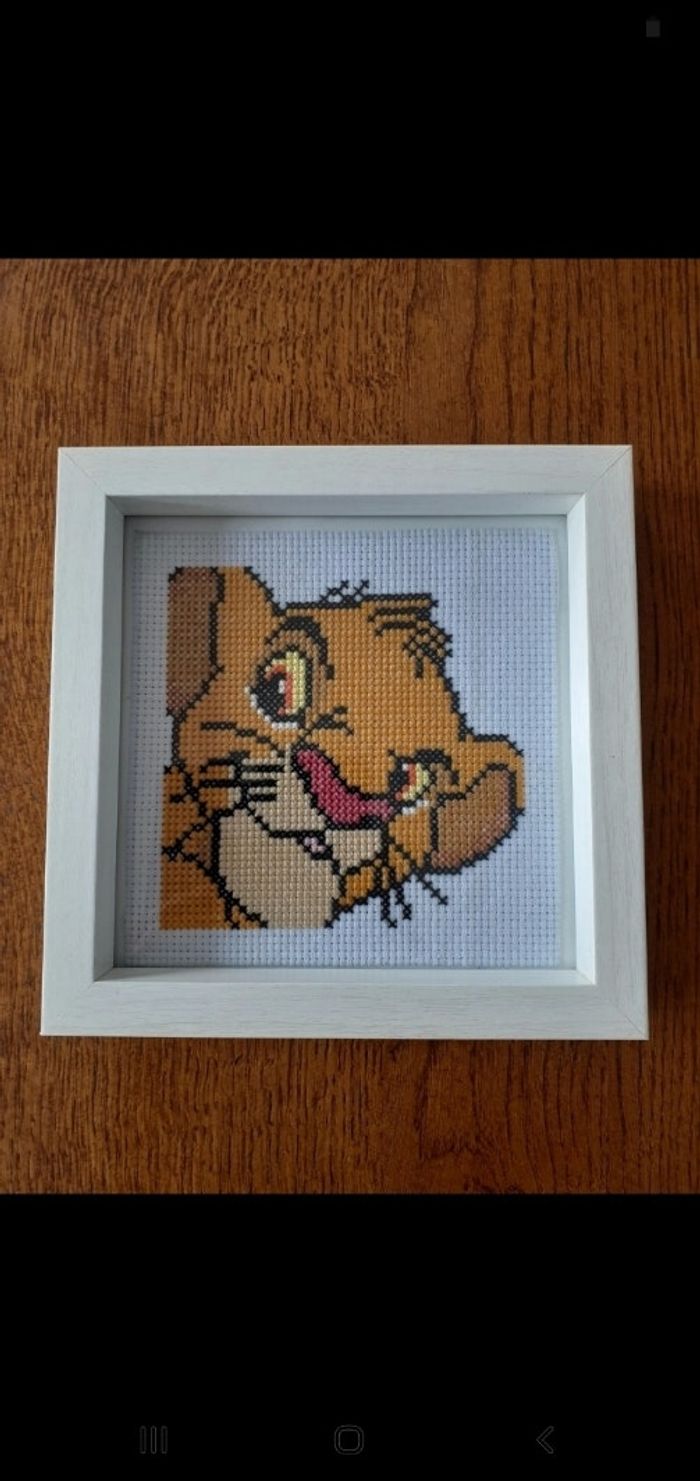Cadre en point de croix motif roi lion de Disney Autre motif sur demande :)