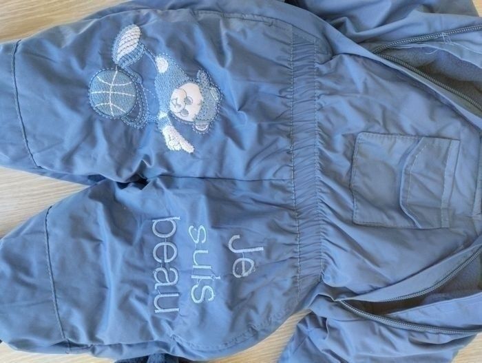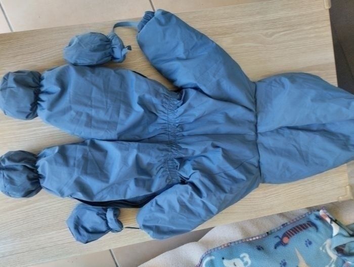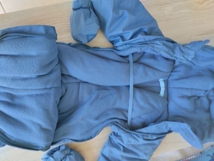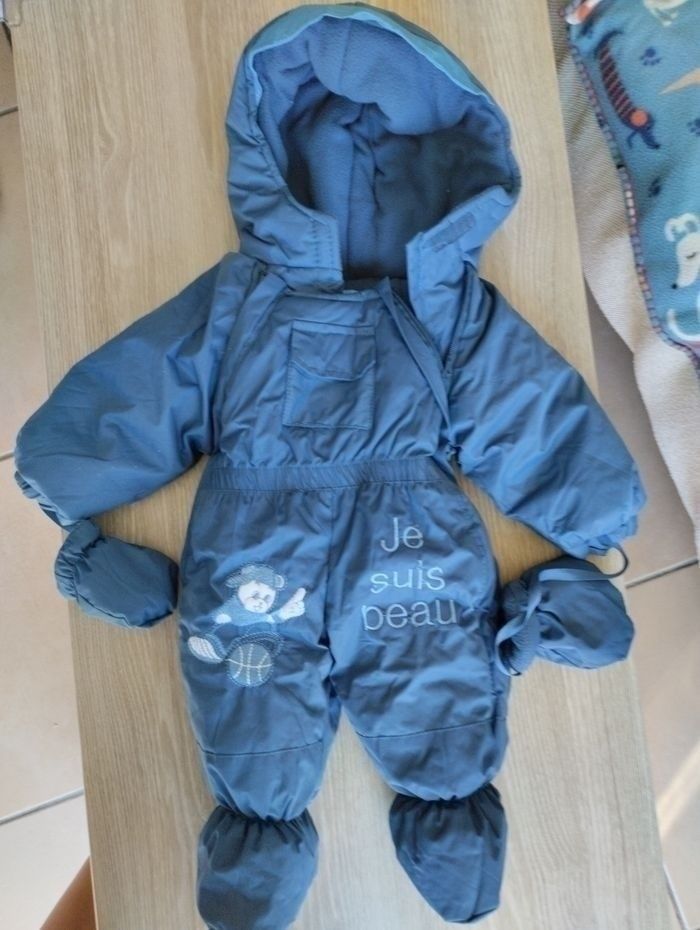 Combinaison hiver, avec capuche et moufles. Très chaud et doux à l' intérieur. Très bon état, utilisé seulement 2 fois. Taille 0-3 mois.
