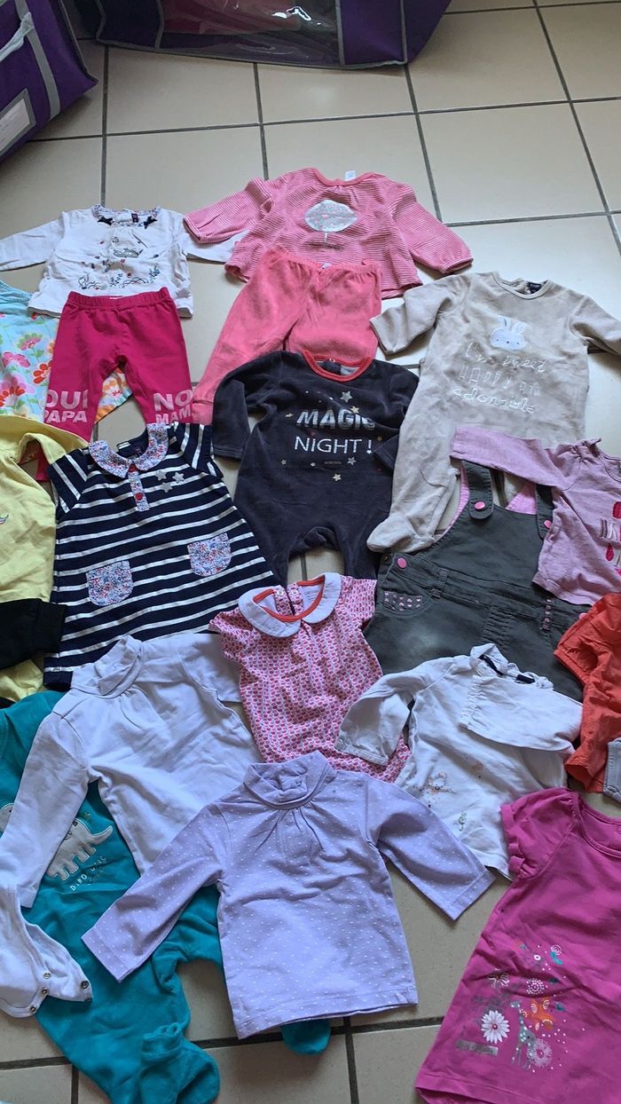 Lot de vêtements bébé fille 9 mois 2 gros sacs remplis de plusieurs pièces de toutes marques différentes Me contacter si vous voulez d’autres photos. Je n’ai pas tout en photo il y a trop d’habits
