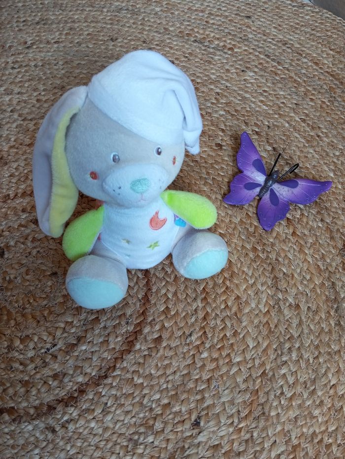 Sucre d'orge Peluche chien Blanc jaune orange Broderies étoiles lune Bonnet Étiquette de composition absente #douceur_sucredorge C25