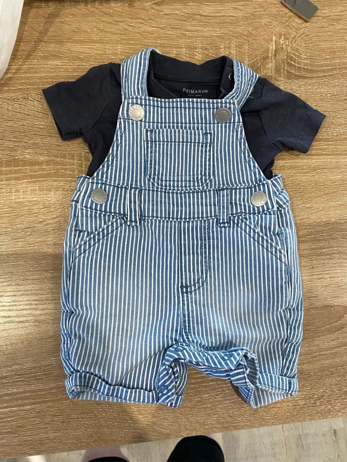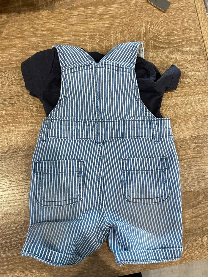 Salopette et tee shirt, jamais porté, juste passé en machine. 0-3 mois
