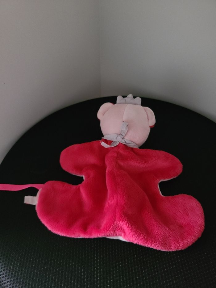 Doudou semi plat ours rose Fuchsia grelot couronne bandana Dpam