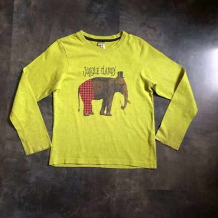 T-shirt manches longues vert imprimé éléphant Taille 8 ans 128 cm 98% coton 2% élasthanne Marque Orchestra
