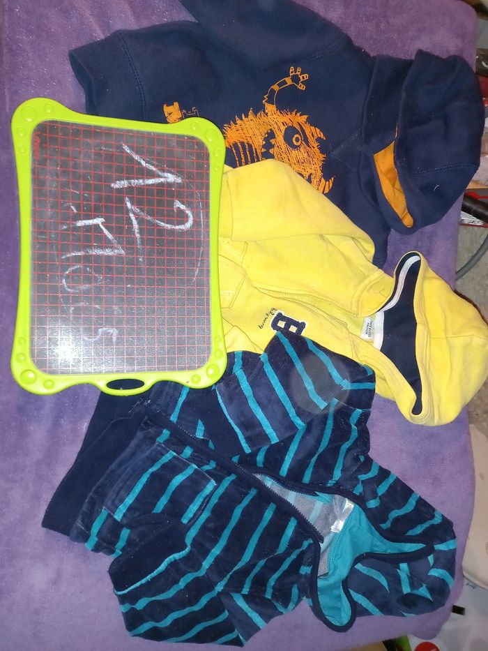 Lot de 3 2 gilets, zip, capuche. 1 molleton 1 velours ras 1 sweat capuche
