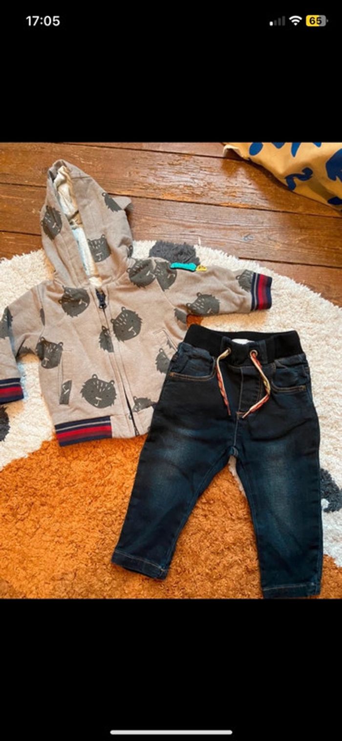 Super état, jean et gilet chaud taille 6 mois, catimini