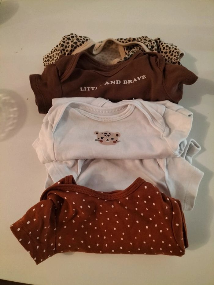 Déjà servi, le mais peut encore servir. Le blanc est délavé. Celui à pois est taille 1 mois.