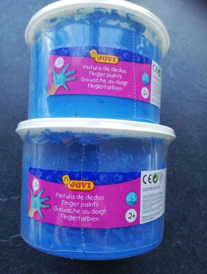 Lot de 2 pot de 500ml de peinture bleu au doigt. Neuf, sous emballage. 10 euros le lot. Envoie possible en mondial relay ou chronoshop2shop.