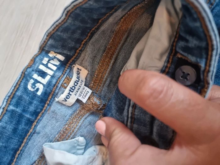 Jean 7 ans 1 tache de stylo et la trace de pince à linge