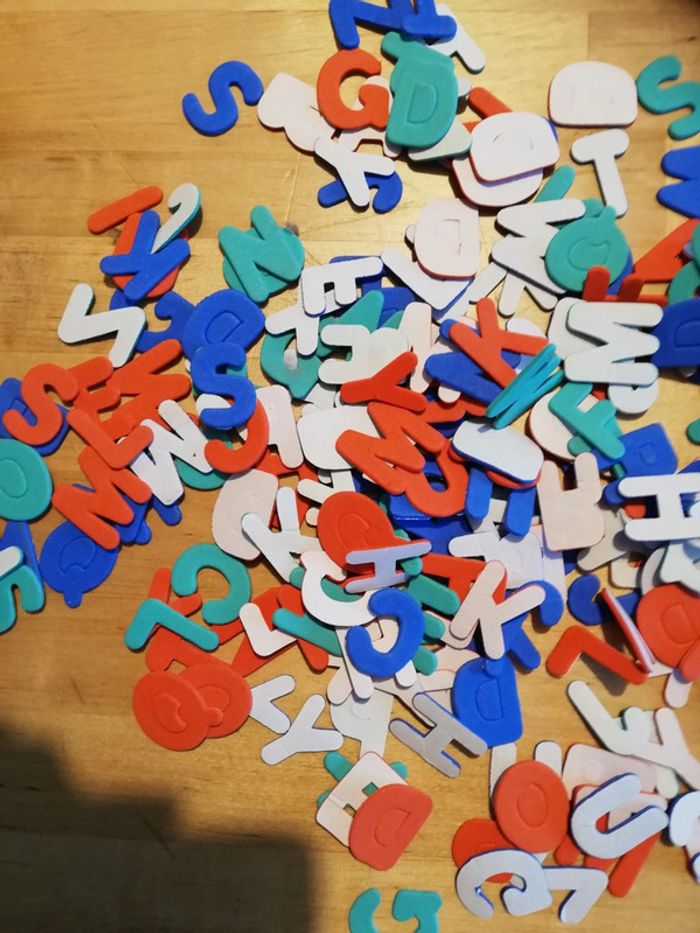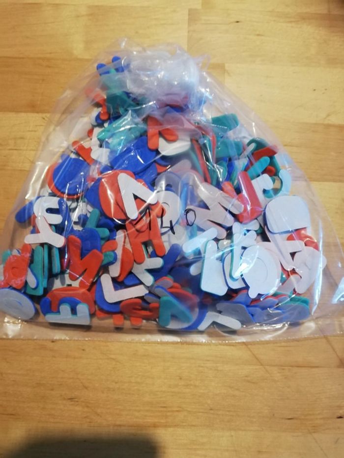 Lot de 140 lettres en mousse autocollantes. 10 euros le lot