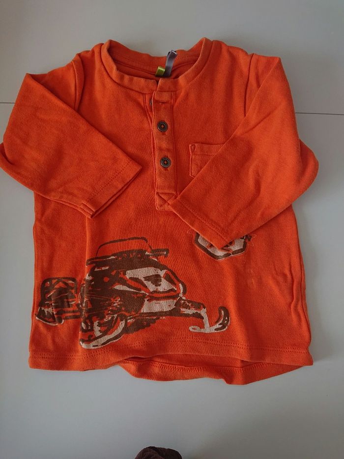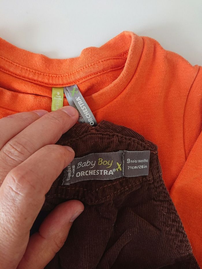 Un t-shirt manches longues et une salopette doublée Marque orchestra Taille 9 mois Très bon état